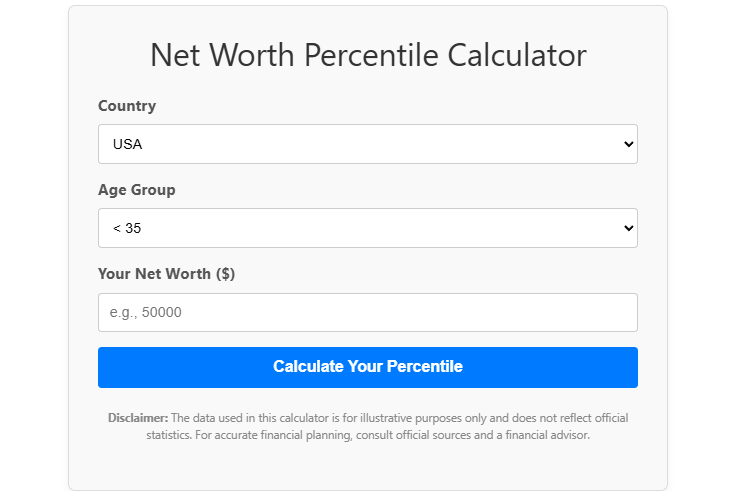 Have you ever asked yourself, “What is my net worth percentile?” Understanding your financial standing in comparison to your peers is a critical step in effective financial planning. A Net Worth Percentile Calculator is an essential tool designed to provide you with this exact insight.